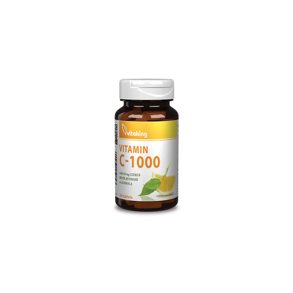 Ez a Vitaking C-vitamin 1000mg biof vitaminunk válogatott, minőségi alapanyagokból készült. Sok-sok természetes összetevőt tartalmaz, amelyek egymás hatását erősítik, és így még pozitívabban hatnak. A C-vitaminnak vagy más néven aszkorbinsavnak számtalan feladata van a szervezetünkben és kortól, nemtől és évszaktól függetlenül mindig szükség van rá, ráadásul vízoldékony vitamin, ezért fontos a rendszeres pótlása. Ha fontos Önnek, hogy minél természetesebb formában pótolja szervezetében a C-vitamint, ez a készítmény megfelelő választás. Az 1000mg C-vitamin mellett minden tabletta tartalmaz még 50mg citrus bioflavonoidot, 50mg acerolát (barbadoszi cseresznye), valamint 10mg csipkebogyót is. Rengeteg természetes összetevőjének köszönhetően a C-vitamin kiegészítők ezen formája még hatékonyabban tud hasznosulni a szervezetben. C-vitamin 1000mg biof a legnépszerűbb termék! A C-vitamin hozzájárul: az immunrendszer normál működéséhez intenzív testmozgás alatt vagy azt követően, a normál energiatermelő anyagcsere-folyamatokhoz, az idegrendszer normál működéséhez, a normál pszichológiai funkció fenntartásához, az immunrendszer normál működéséhez, a sejtek oxidatív stresszel szembeni védelméhez, a fáradtság és a kifáradás csökkentéséhez, az E-vitamin redukált formájának regenerálásához, fokozza a vas felszívódását. A C-vitamin hozzájárul a normál kollagénképződéshez és ezen keresztül az alábbi funkciókhoz: az erek normál állapotának, működésének fenntartásához, a normál csontozat fenntartásához, a porcok normál állapotának, működésének fenntartásához, a fogíny normál állapotának fenntartásához, a bőr normál állapotának, működésének fenntartásához, a fogak normál állapotának fenntartásához. Az 1920-as évek végén Szent-Györgyi Albert ismeretlen anyagot talált a mellékvesében. Megállapította összetételét (C6H8O6) ami előbb a hexuronsav, később pedig az aszkorbinsav nevet kapta. Ekkor azonosította a C-vitaminnal. Mára a C-vitamin a legismertebb és legtöbbet használt vitamin. Aszkorbinsav = A- fosztóképző + scorbuticus (skorbut) mivel a molekula hiánya az emberi szervezetben skorbuthoz vezethet. C-vitamin = L-aszkorbinsav, ha gyümölcsből vonják ki akkor is és ha laborban állítják elő akkor is ugyan azt a vegyületet kapjuk. A C-vitamin bizonyítottan hatásos lehet sokféle egészségügyi probléma kezelésében. A téli időszakban semmiképppen nem elhanyagolható a megfelelő mennyiségű C-vitamin fogyasztás. De nyáron sem hanyagolható el fogyasztása.